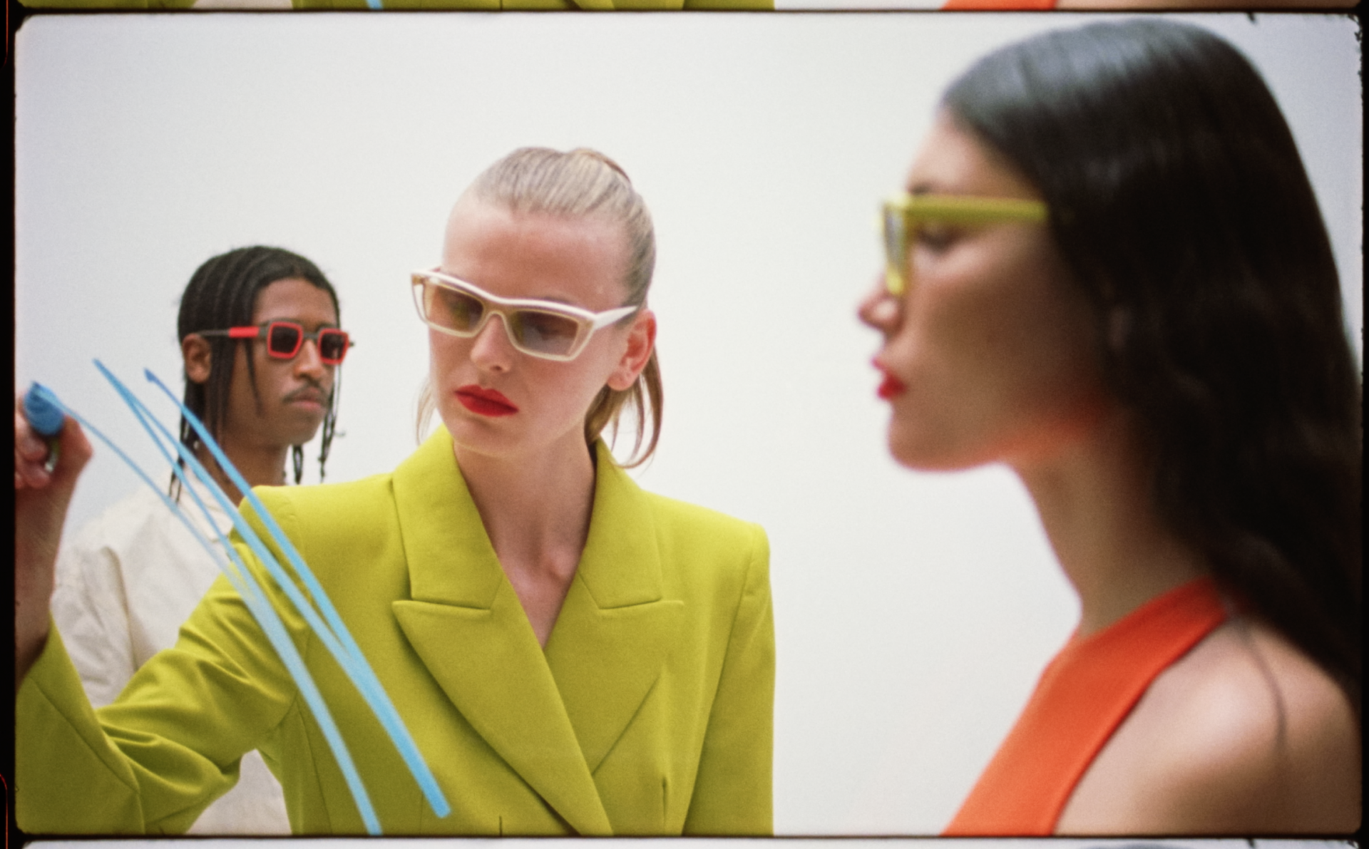 Ch. Martínez se desenvuelve muy bien en moda. Cosas que se pueden hacer con un fondo blanco como premisa, arte como consecuencia, para anunciar nueva temporada de las nuevas gafas de Xavier García.